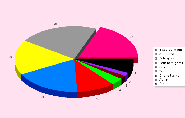 | Autres petits gestes (*) : des choses banales dans un couple normal mais très rares dans mon couple, comme par exemple me prendre la main dans la rue, m'embrasser avec la langue, etc ... |