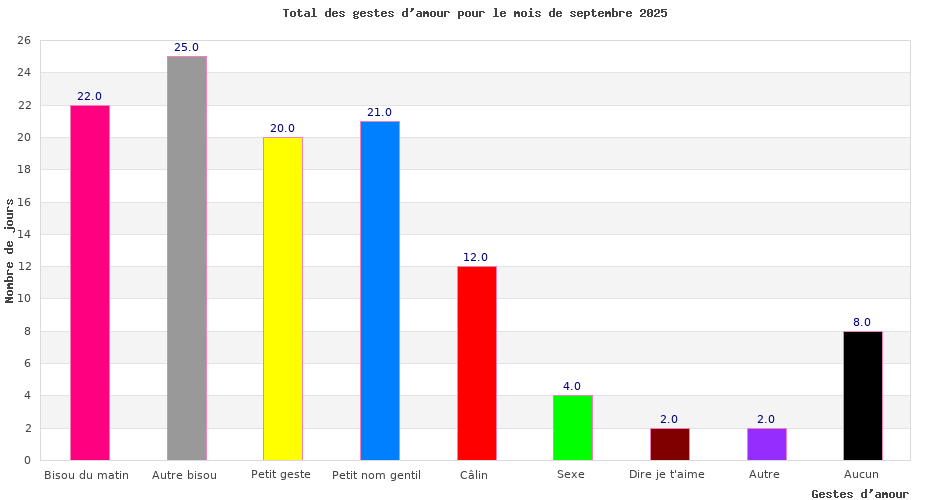 | Nombre de jours où j'ai eu d'autres bisous en septembre 2025 : | 25 |